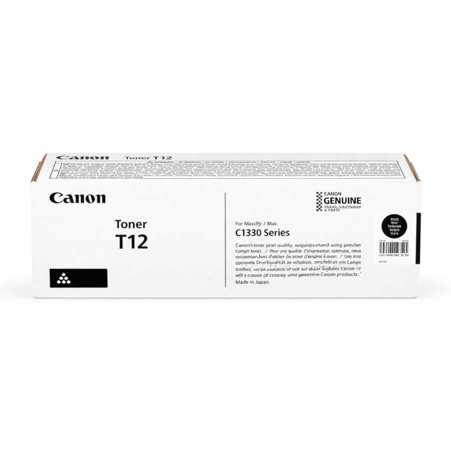 Canon T12 Siyah Orjinal Toner 5098C006A, Canon i-SENSYS X serisi yazıcılar için özel olarak geliştirilmiş %100 orijinal OEM toner kartuşudur. Profesyonel ofis kullanımı ve günlük yoğun baskı ihtiyaçları için yüksek kaliteli, net ve güvenilir çıktı performansı sunar. Siyah (black) baskılarda yüksek kontrast, keskin metinler ve temiz çıktı kalitesi sağlayarak belgeler, raporlar ve resmi evraklarda profesyonel sonuçlar elde edilmesine yardımcı olur.
