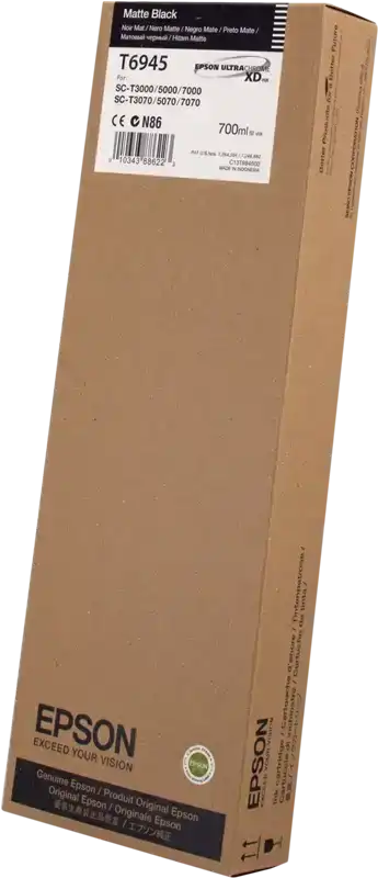 Epson T6945 C13T694500 Mat Siyah Orijinal Kartuş, Epson SureColor SC-T serisi geniş format yazıcılarınız plotter için fabrikasyon standartlarında en yüksek performansı almanız amacıyla özel olarak üretilmiş %100 orijinal Epson sarf malzemesidir. 700 ML yüksek kapasitesi ile CAD çizimleri, GIS haritalamaları ve profesyonel mimari projelerde muazzam bir baskı hacmi sunarak sayfa başı maliyetlerinizi minimuma indirir. Orijinal Epson UltraChrome XD pigment mürekkep teknolojisi sayesinde, kağıt üzerinde mükemmel tutunma sağlar, suya ve neme karşı dayanıklı, dağılmayan ve solmayan keskin mat siyah çizgiler elde etmenizi garanti eder.